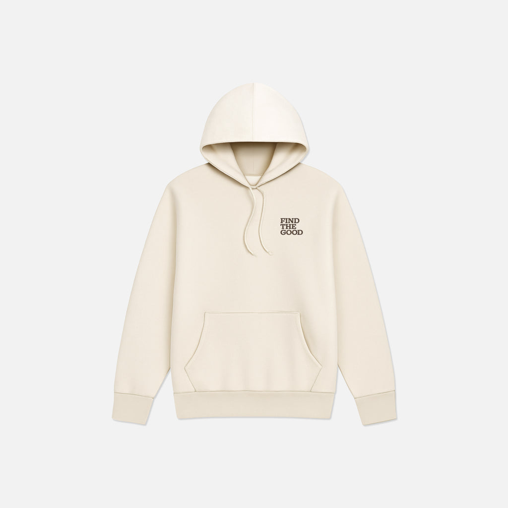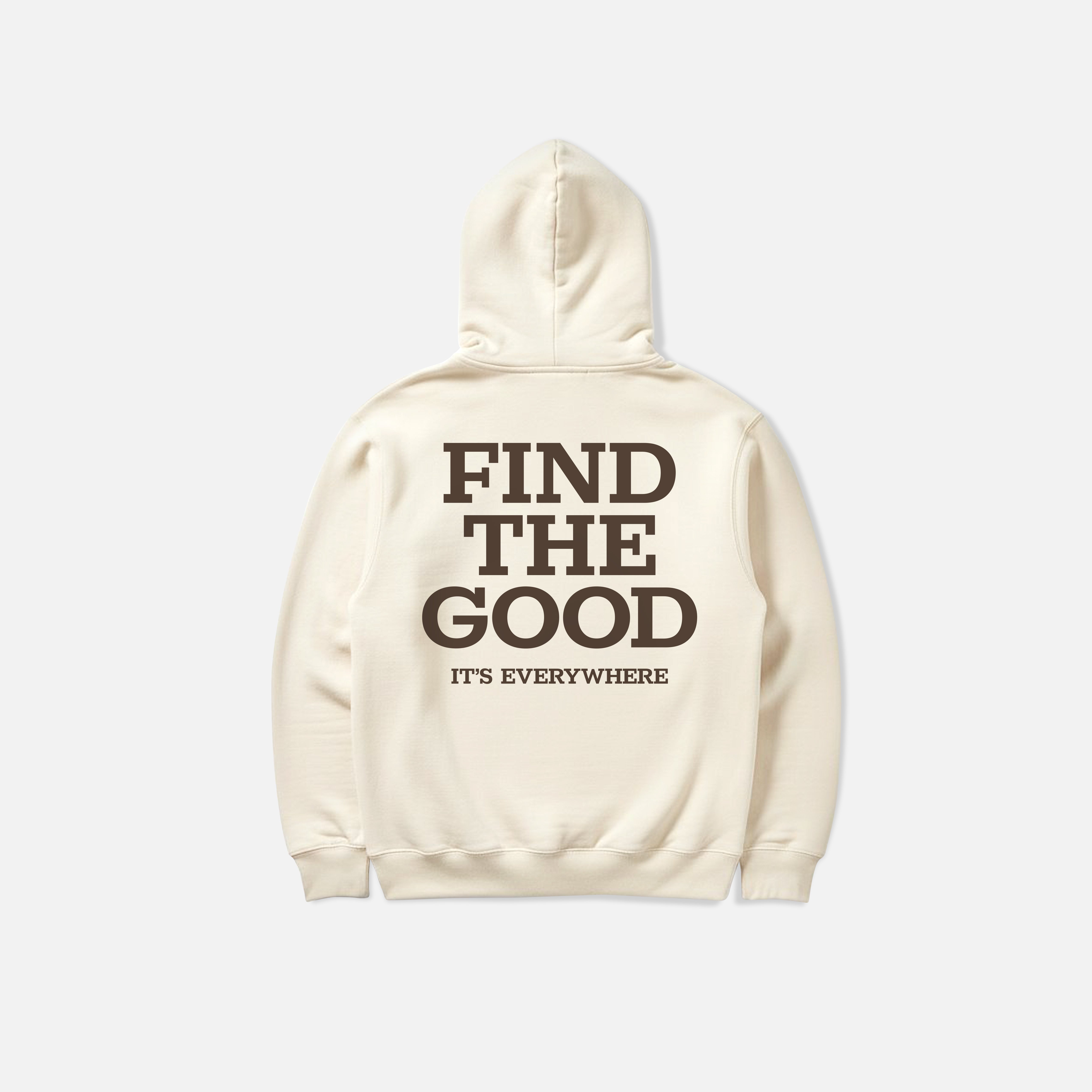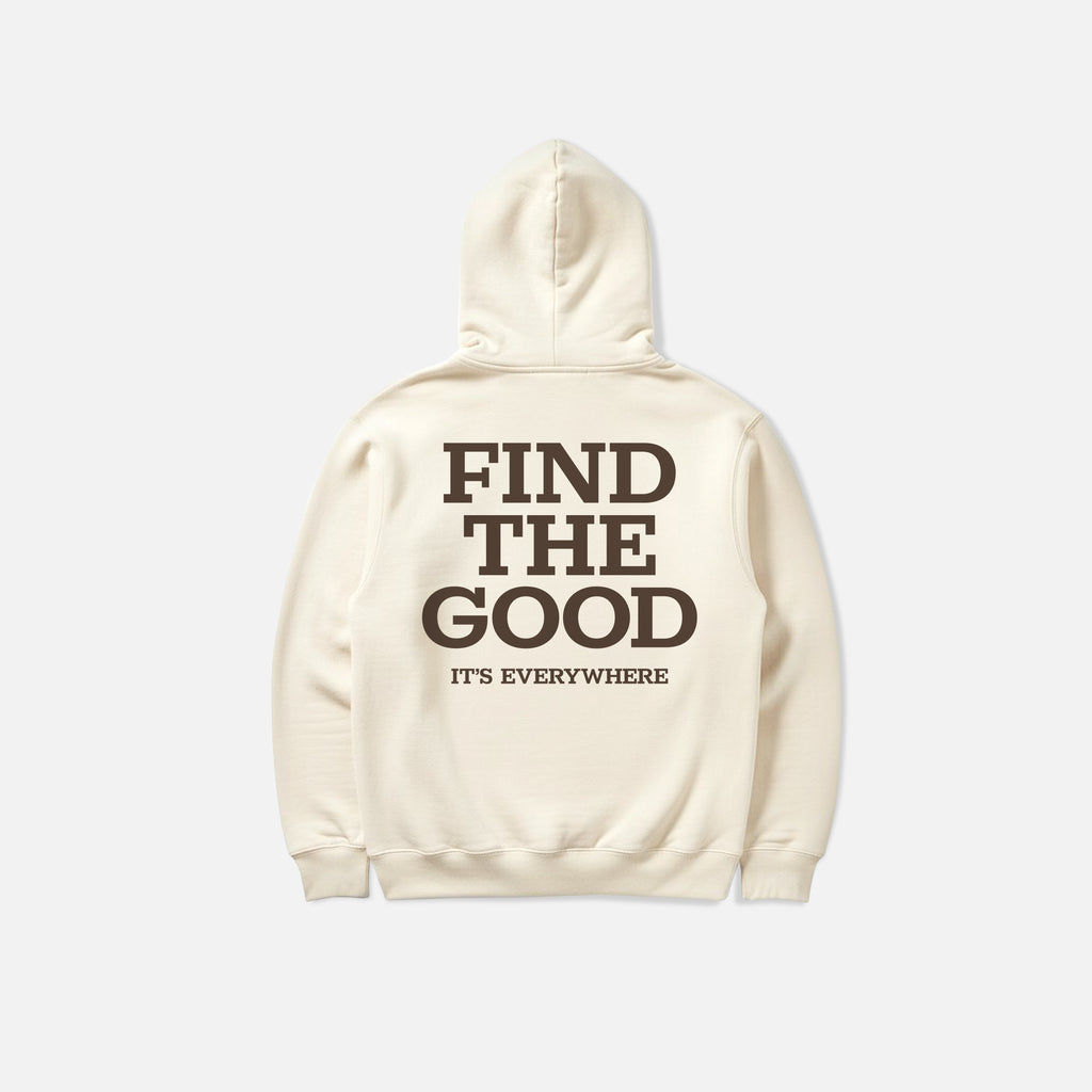The Core Hoodie from our Find The Good Collection blends comfort and message-driven design into one elevated essential. Featuring embroidered “Find The Good” lettering on the left chest and a bold “Find The Good. It’s Everywhere.” screenprint across the back, this hoodie is a wearable reminder to lead with optimism.