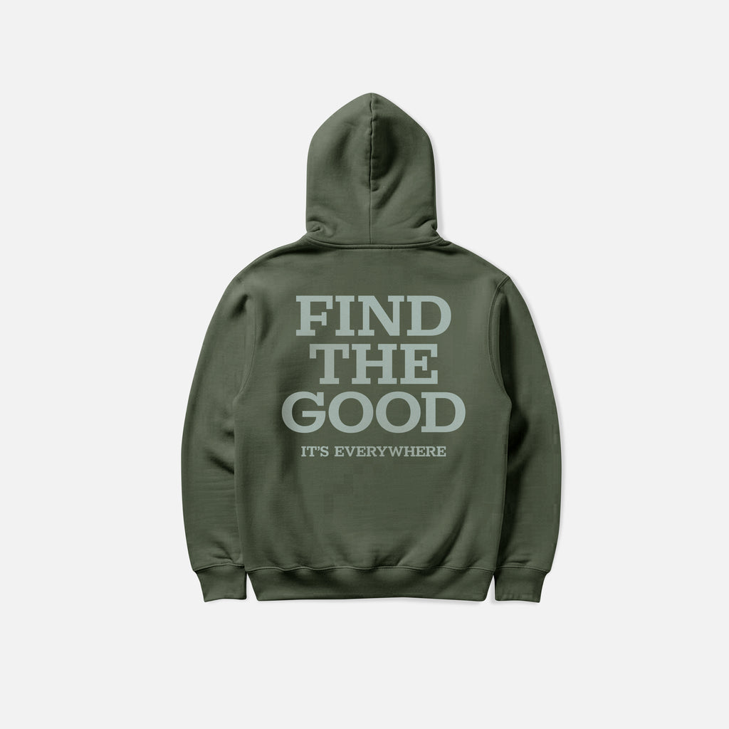 Featuring “Find The Good” lettering on the center chest and a bold “Find The Good. It’s Everywhere.” screenprint across the back, this hoodie blends comfort and message driven design into one elevated essential. It feels like your favorite vintage wash hoodie!