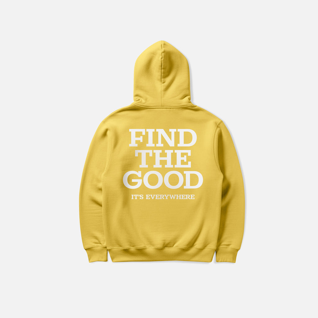 Featuring “Find The Good” lettering on the center chest and a bold “Find The Good. It’s Everywhere.” screenprint across the back, this hoodie blends comfort and message driven design into one elevated essential. It feels like your favorite vintage wash hoodie!