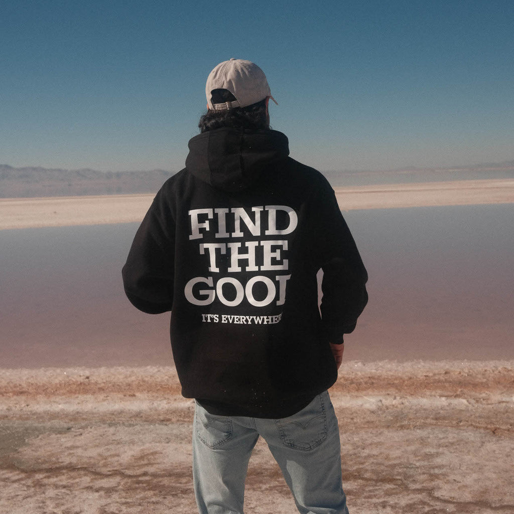The Core Hoodie from our Find The Good Collection blends comfort and message-driven design into one elevated essential. Featuring embroidered “Find The Good” lettering on the left chest and a bold “Find The Good. It’s Everywhere.” screenprint across the back, this hoodie is a wearable reminder to lead with optimism.