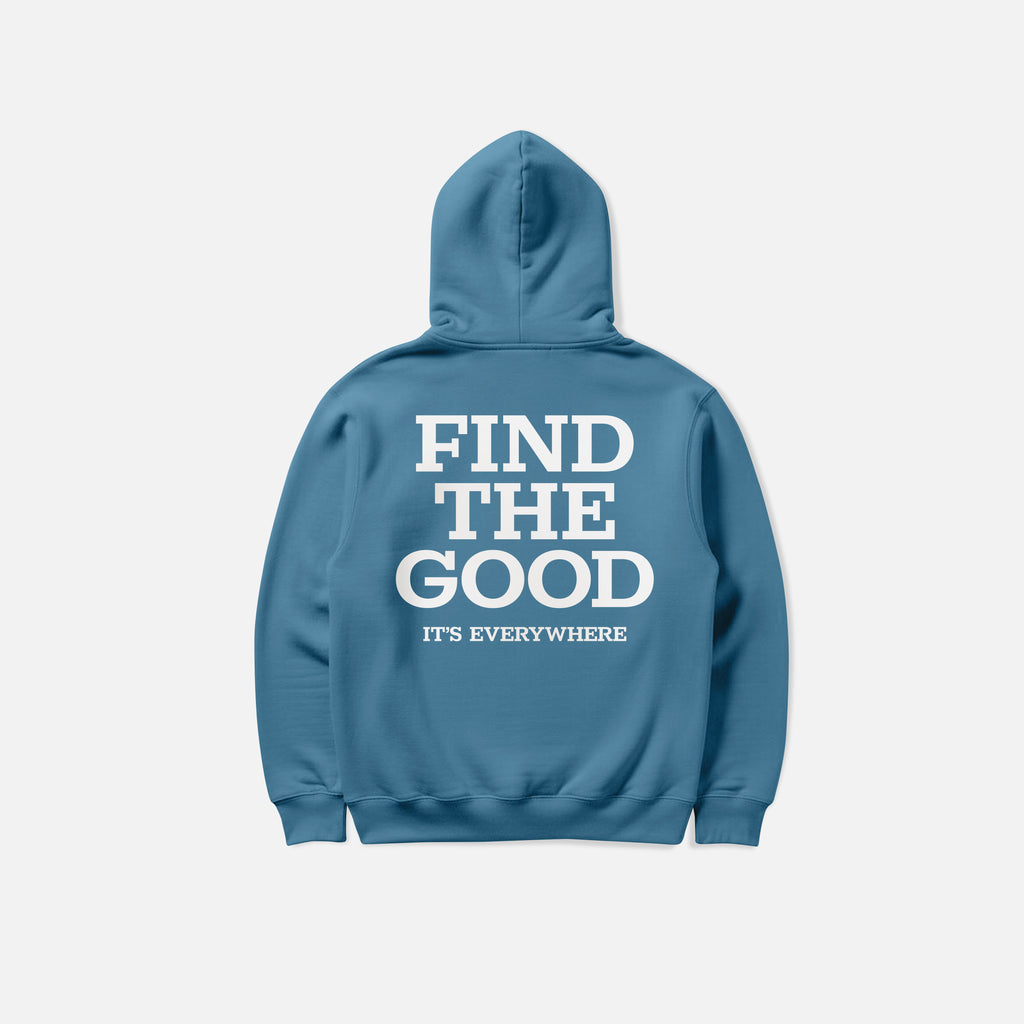 Featuring “Find The Good” lettering on the center chest and a bold “Find The Good. It’s Everywhere.” screenprint across the back, this hoodie blends comfort and message driven design into one elevated essential. It feels like your favorite vintage wash hoodie!