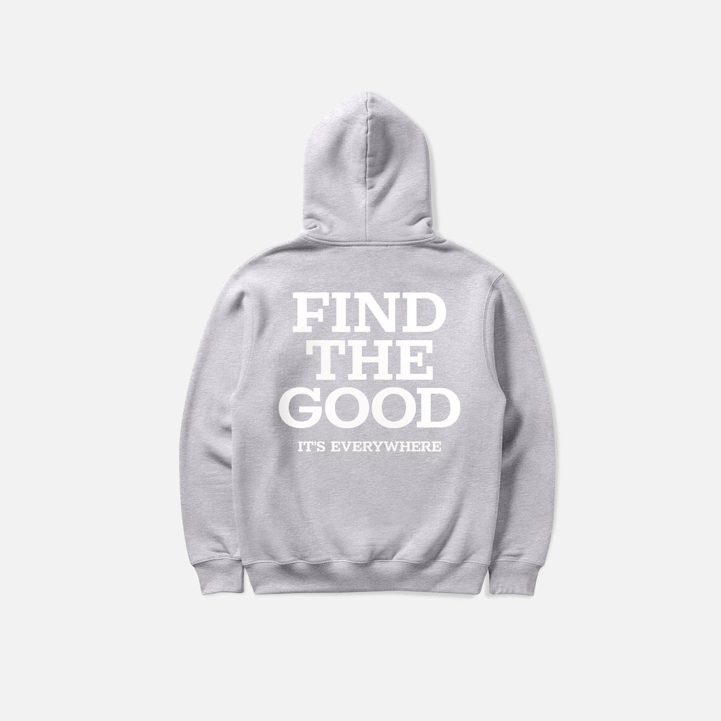 The Core Hoodie from our Find The Good Collection blends comfort and message-driven design into one elevated essential. Featuring embroidered “Find The Good” lettering on the left chest and a bold “Find The Good. It’s Everywhere.” screenprint across the back, this hoodie is a wearable reminder to lead with optimism.